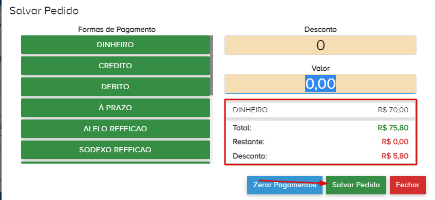 OBS: Muito importante lembrar que o desconto só é feito somente em cima do valor total do pedido.