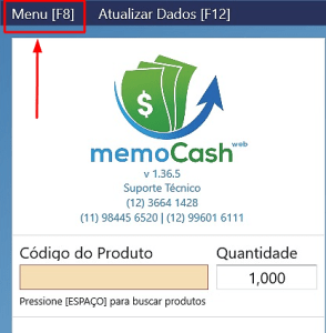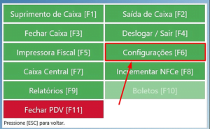 Passo 2 – Feito isso, abra o PDV e vá até o Menu[F8] e depois em Configurações[F6].