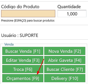 Passo 8 – Para encontrar esse orçamento basta clicar no botão “Orçamentos” na tela inicial do PDV.