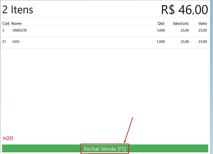 Passo 4 – De volta a tela inicial do PDV você irá lançar os produtos do orçamento e clicar em “Fechar Venda[F5]”.