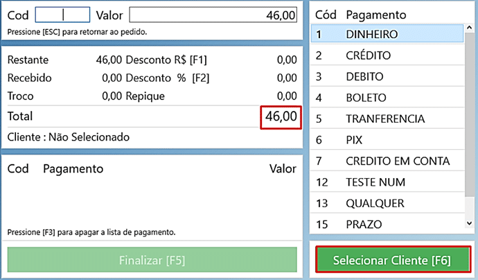 - Receber[F6]: Vai enviar os produtos de volta a tela inicial para fazer o fechamento da venda.
