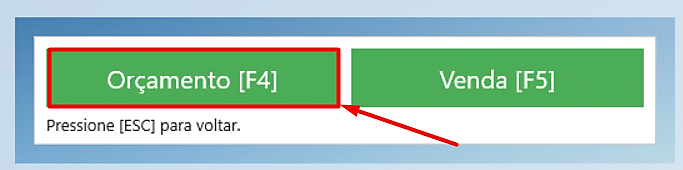 Passo 5 – Abrirá a tela com as duas opções, clique em “Orçamento”.