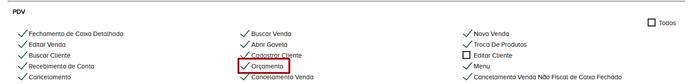 Passo 1 – Primeiramente você vai logar na retaguarda com suas informações de ID, Usuário e Senha e verificar se a opção “Orçamentos” está habilitada ao usuário.