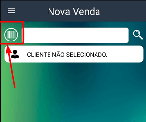 O primeiro modo é utilizado quando o código de barras do produto está cadastrado no sistema, pra isso basta clicar no ícone de código de barras à esquerda que abrirá a tela para leitura.