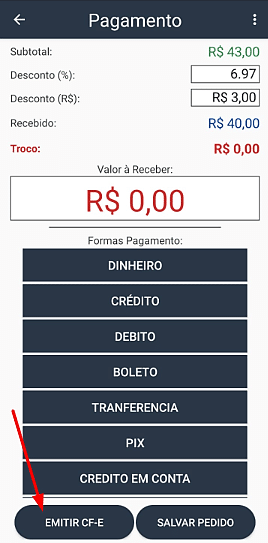 - Emitir CF-e: FAz a emissão de Cupom Fiscal caso esteja credenciado para emissão de NFC-e.