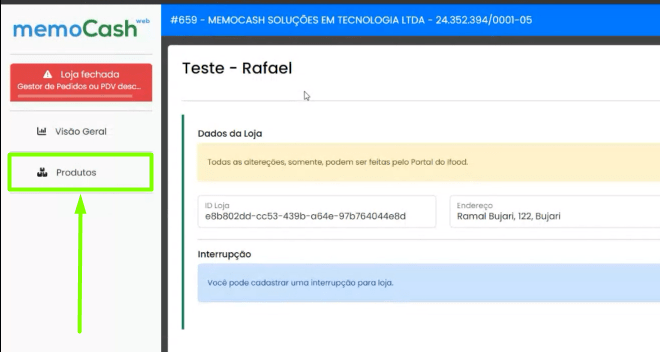 Passo 2: Na Retaguarda MemoCash Web, módulo IFood, acesse a aba de “Produtos”.
