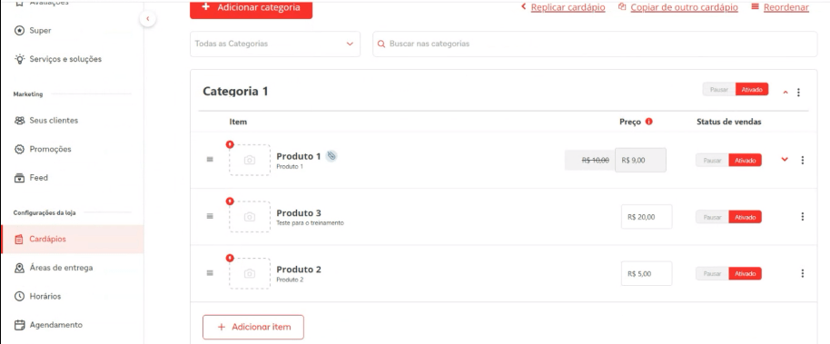 Passo 5: Os produtos importados constarão a partir de agora no Módulo IFood do MemoCash Web.