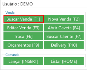 Passo 5 – Para encontrar as vendas realizadas basta selecionar o botão Buscar Venda[F1] no canto esquerdo ou apenas apertar F1 no teclado. Irá listar todas as vendas feitas conforme os filtros utilizados.
