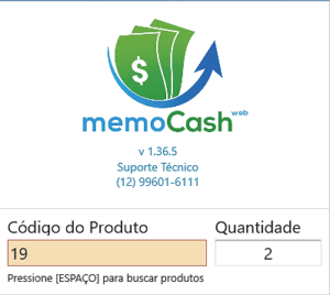 E a outra forma de lançar produtos é utilizando o código de cadastro. O item acima escolhido tem código de cadastro 16, faremos a inclusão dos itens 19 e 28. Para alterar a quantidade dos itens basta inserir o código e no campo Quantidade colocar a quantidade desejada, após isso basta pressionar o [Enter].