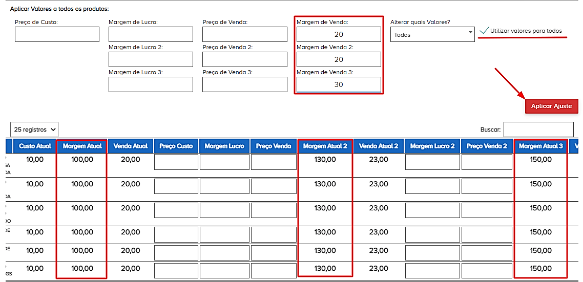 Após colocado preços, basta clicar no botão “Aplicar Ajuste”.
