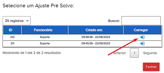 Para consultar esse ajuste salvo posteriormente, clique no botão “Carregar Ajuste“.
