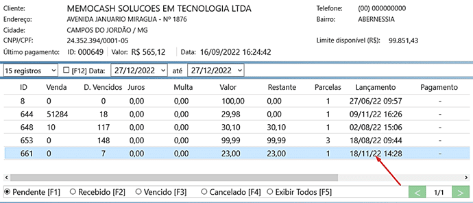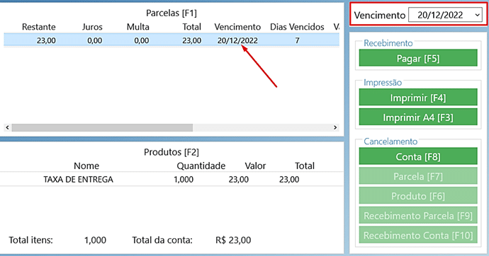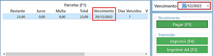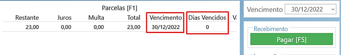 Com isso, a data será alterada e a parcela em questão que estava com status de vencida ficará em aberto: