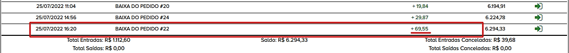 - Se a forma de pagamento em que for dado baixa o pedido, tiver taxa de operação cadastrada, irá abater o valor automaticamente.