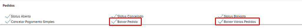 Antes de iniciar o processo é necessário verificar se a opção “Baixar Pedido” e “Baixar Vários Pedidos” está habilitada no cadastro do usuário.