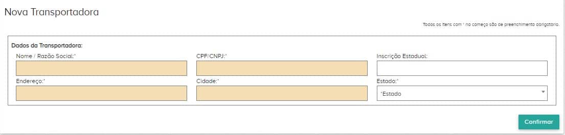 - O cadastro de Transportadora pode ser utilizado na emissão de NF-e quando a opção de transportadora for Contratação do Frete por Conta do Remetente(CIF) ou Contratação do Frete Por Conta do Destinatário(FOB).