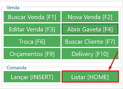 Passo 1 – Logar no PDV com as informações de Usuário e Senha. Ir até a opção “Listar[HOME]”.