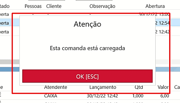 Assim que aparecer a mensagem de comanda carregada mesmo a comanda não estando lançada no grid.