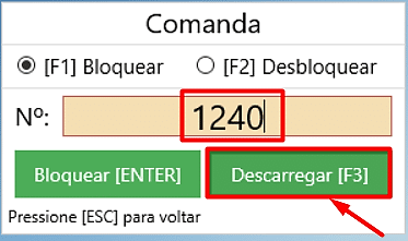 Passo 3 – Abrirá a tela de bloqueio, informe o número da comanda e clique em “Descarregar[F3]”.