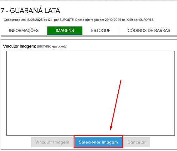 Passo a passo de como adicionar imagem a um produto