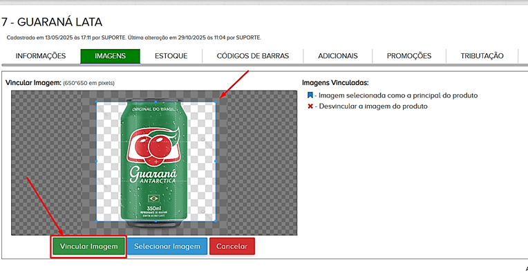 Passo 5 – Após abrir, ajuste a imagem ao tamanho da margem de modo que não corte o produto e clique em “Vincular Imagem“: