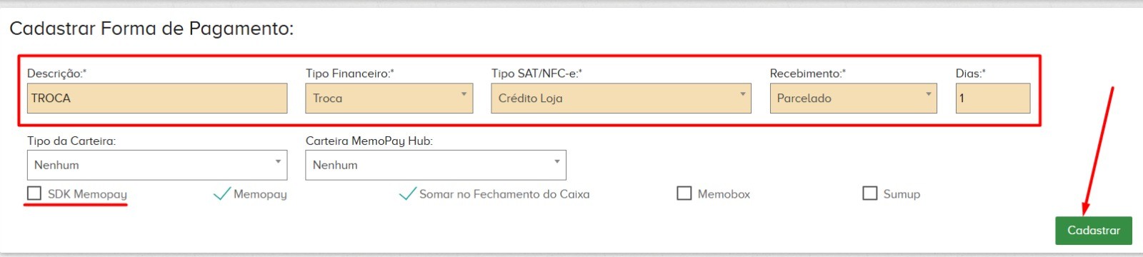 *Lembrando de deixar o campo SDK MemoPay desabilitado