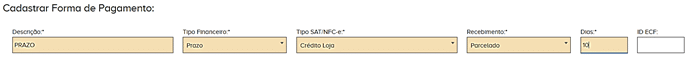 - Recebimento(A vista ou Parcelado): Em casos de vendas a prazo ou em cartão é utilizado o tipo parcelado.