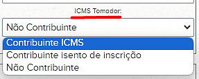 - ICMS Tomador: Contribuinte ICMS, Contribuinte Isento de Inscrição ou Não Contribuinte.