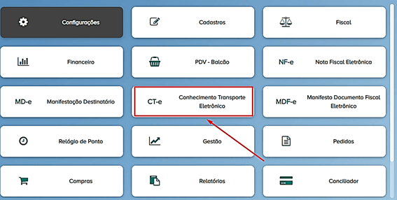 Selecionar o Módulo “CT-e Conhecimento Transporte Eletrônico“: