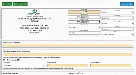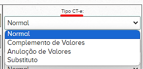 - Tipo do CT-e: Normal, Complemento de Valores, Anulação de Valores e Substituto.
