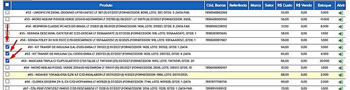 Passo 2 – Na listagem de Produtos encontre os produtos que deseja exluir e selecione na caixa de seleção: