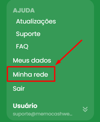 Passo 2 – Nos 3 risquinhos da tela inicial, clique em nas setas ao lado da escrita Usuário e selecione a opção “Minha Rede“: