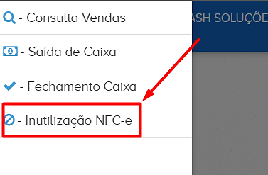Passo 3 – Selecione a opção Inutilização NFC-e: