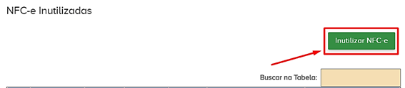 Passo 4 – Abrirá a tela com as NFC-e que já foram inutilizadas no sistema. Clique no botão Inutilizar NFC-e: