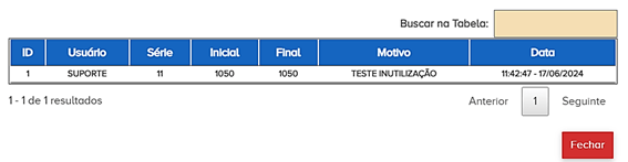 Passo 6 – Após a validação da Inutilização, aparecerá na listagem as numerações inutilizadas: