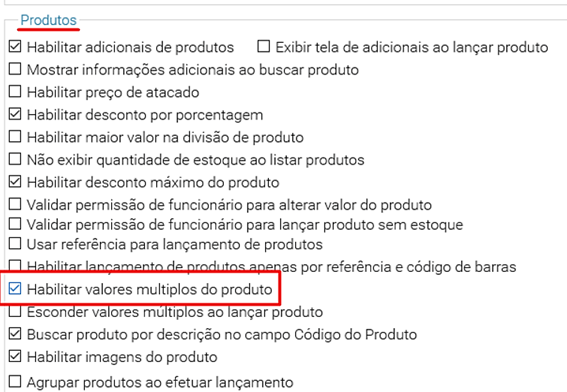 Passo a passo de como cadastrar e utilizars os valores múltiplos de um produto