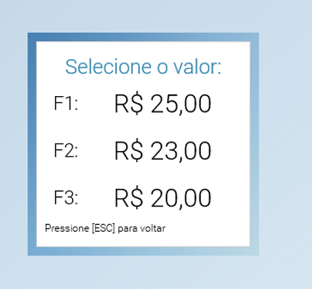 Opção 1: Utilizando os 3 valores com opção de selecionar o valor desejado no PDV.