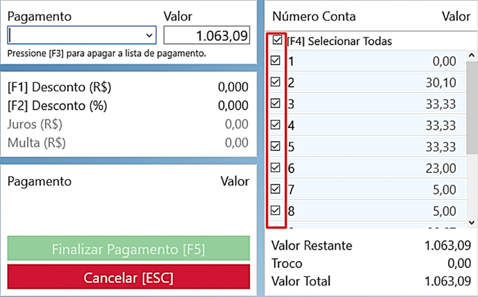 - Receber múltiplas Parcelas de Diversas Contas de um Mesmo Cliente: Permite o pagamento de diversas parcelas de contas diferentes.