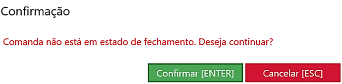 - Solicitar Confirmação ao Receber Comanda fora do Estado de Fechamento: Abre tela de confirmação do recebimento.