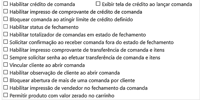 - Bloquear Abertura de Mais de Uma Comanda Por Cliente: Só poderá ter uma comanda vinculada ao mesmo cliente.