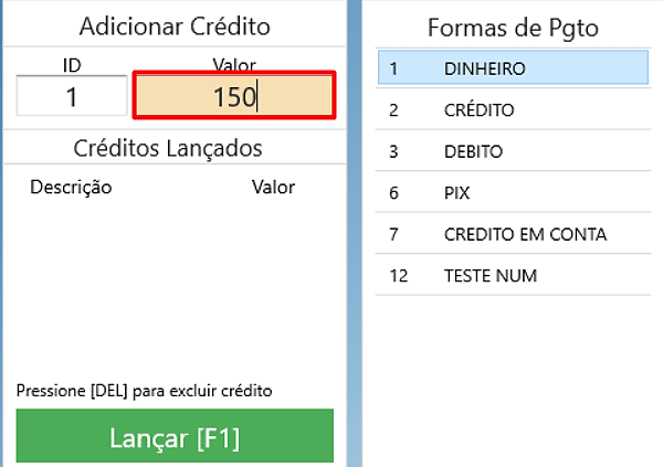 - Exibir tela de Crédito ao Lançar Comanda: Sempre ao lançar uma comanda nova abrirá a tea para inserir crédito.