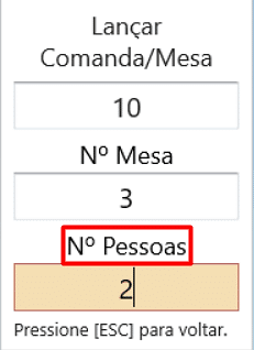 - Solicitar Quantidade de Pessoas ao Abrir Comanda: Habilita a opção de inserir quantidade de pessoas que estão dividindo a mesma comanda.