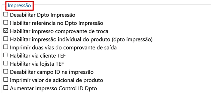 - Habilitar Impresso Comprovante de Troca: Ao realizar uma troca e feita a impressão do comprovante.