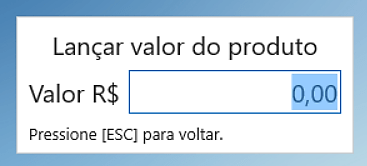 Nessa tela você poderá lançar o valor desejado do produto e após apertar o [ENTER].