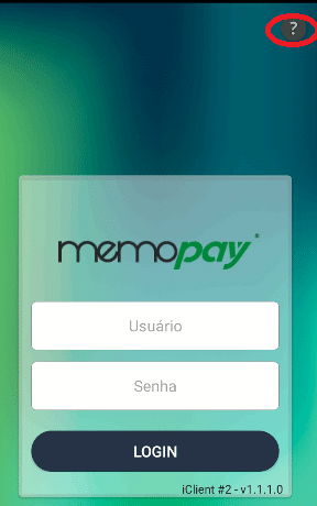 Na tela de login do app clique no símbolo de ? (interrogação) para abrir as configurações: