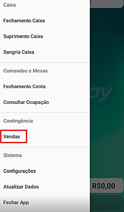 Passo 6 – Para sincronizar as vendas, clique no Menu à esquerda da tela: