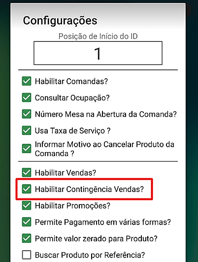 Passo 1 – O primeiro passo é habilitar a configuração de Contingência de Vendas dentro do aplicativo Memopay.