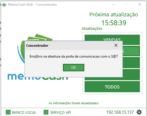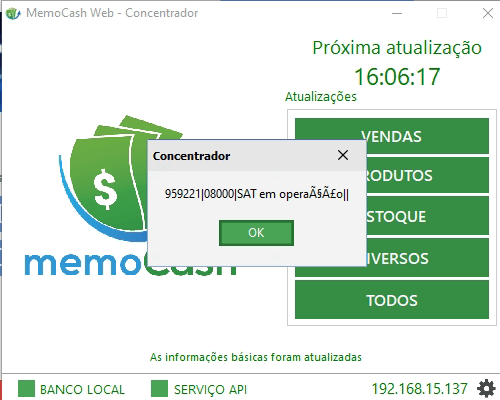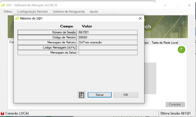 Após procedimento, feche o Concentrador, abra novamente e aperte F8 para consultar o status do SAT.