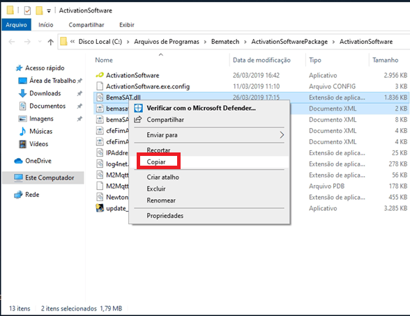 Passo 2 – Abrir Local do arquivo do ativador e copiar os arquivos BemaSAT.dll e bemasat.xml