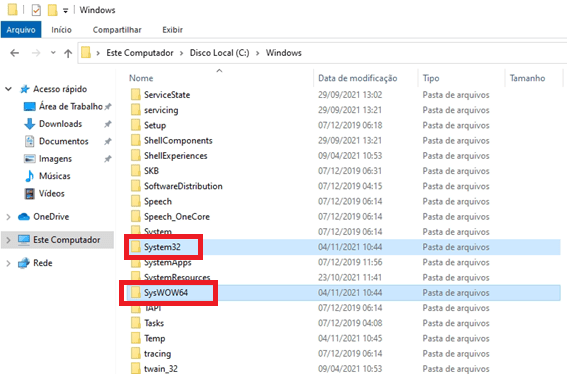 Passo 3 – Colar estes arquivos em System32 e SYSWOW64 na pasta WINDOWS no disco C: