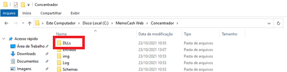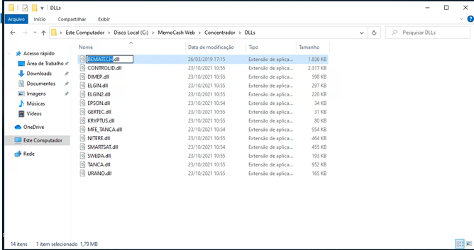 Passo 6 – Juntamente com o “bemasat.xml” dentro da pasta do software de ativação terá o arquivo “BemaSAT.dll”, copie ele e coloque na pasta de DLLs no Concentrador (se foi feita a instalação padrão está em: “C:\MemoCash Web\Concentrador\DLLs”) e renomeie esse arquivo para “BEMATECH.dll”. (se já existir um arquivo com esse nome).